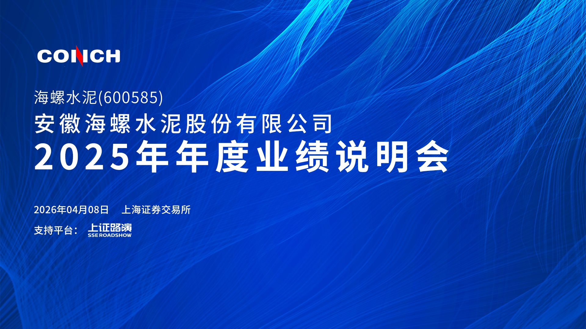 海螺水泥2025年年度业绩说明会定于2026年4月8日15:00-16:00举行,欢迎关注!
