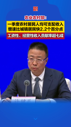 农业农村部:一季度农村居民人均可支配收入增速比城镇...