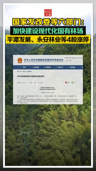 国家发改委等六部门:加快建设现代化国有林场。盘面上,平潭发展、永安林业等4股涨停