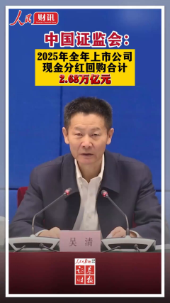 中国证监会:2025年全年上市公司现金分红回购合计...