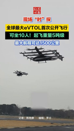 全球最大eVTOL首次公开飞行!可坐10人!起飞重...