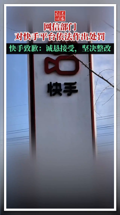 网信部门对快手平台依法作出处罚!快手致歉:诚恳接受,坚决整改