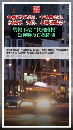 金融监管总局、中央网信办、公安部、中国人民银行、中国证监会:警惕不法“代理维权”短视频及直播陷阱
