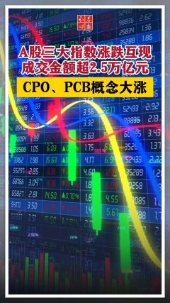 A股三大指数涨跌互现 两市成交额超 2.5万亿元 CPO、PCB概念大涨
