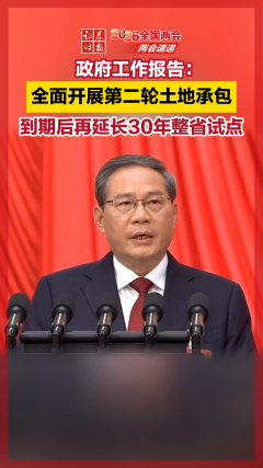 政府工作报告:全面开展第二轮土地承包到期后再延长3...