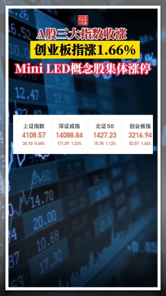 A股三大指数收涨 ,创业板指涨1.66%!Mini...