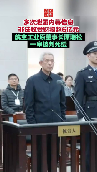 多次泄露内幕信息 非法收受财物超6亿元 航空工业原董事长谭瑞松一审被判死缓