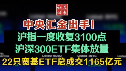 中央汇金出手!沪指一度收复3100点,沪深300ETF集体放量,22只宽基ETF总成交1165亿元