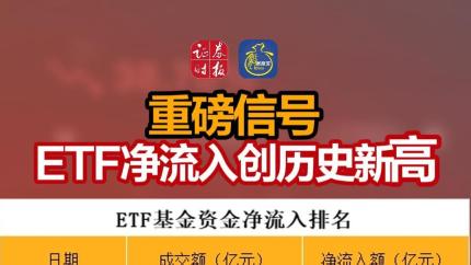 重磅信号,昨日ETF净流入金额创历史新高!#ETF #重磅 #历史新高 #ETF净流入 #A股