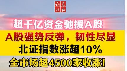 超千亿资金驰援A股,A股强势反弹,韧性尽显,北证指数涨超10%,全市场超4500家收涨!