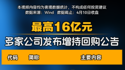 最高16亿元 多家公司发布增持回购公告