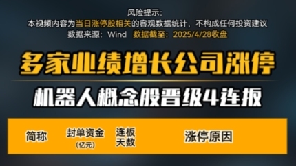 多家业绩增长公司涨停 机器人概念股晋级4连扳