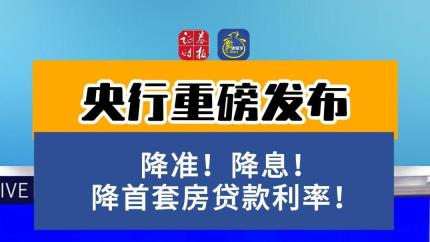 央行重磅发布:降准!降息!降首套房贷款利率!#央行 #降准 #降息 #重磅消息 #贷款利率