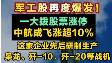 军工股再度爆发!一大拨股票涨停,中航成飞涨超10%,这家企业先后研制生产 枭龙、歼-10、歼-20等战机