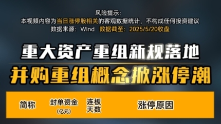 重大资产重组新规落地 并购重组概念掀涨停潮
