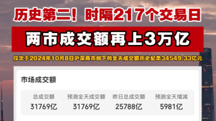历史第二!时隔217个交易日两市成交额再上3万亿