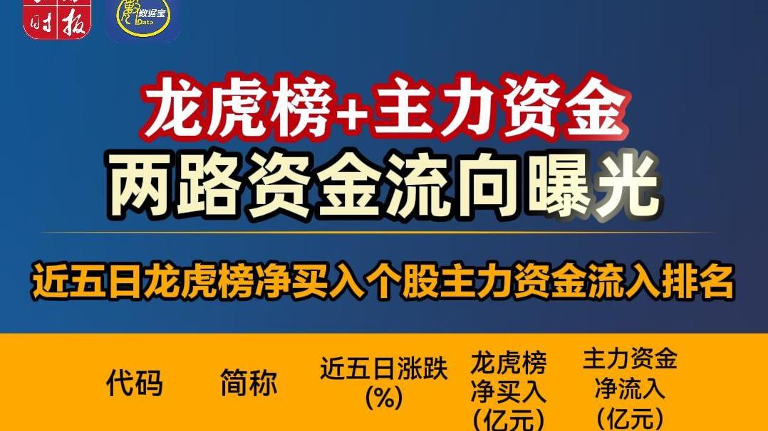 龙虎榜+主力资金近五日流向曝光!#龙虎榜 #主力资金 #净买入 #A股 #机构