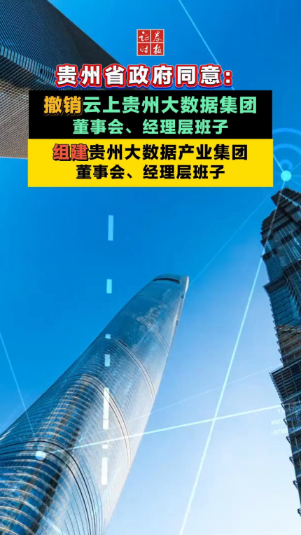 贵州省政府同意:撤销云上贵州大数据集团董事会、经理层班子,组建贵州大数据产业集团董事会、经理层班子