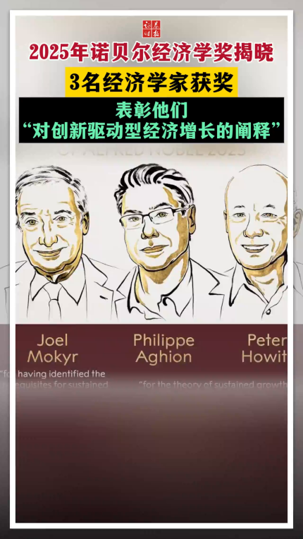 2025年诺贝尔经济学奖揭晓 3名经济学家获奖 表彰他们“对创新驱动型经济增长的阐释”