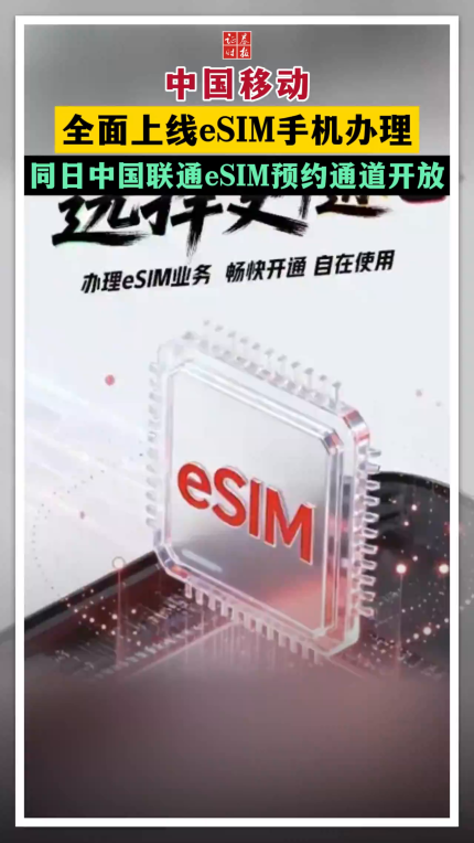 中国移动全面上线eSIM手机办理 同日中国联通eSIM预约通道开放