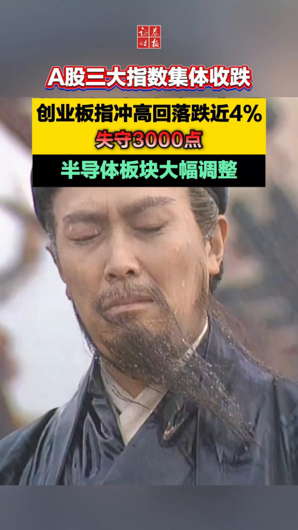 A股三大指数集体收跌,创业板指冲高回落跌近4%,失守3000点,半导体板块大幅调整