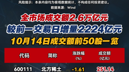 全市场成交额2.6万亿元 较前一交易日增量2224亿元