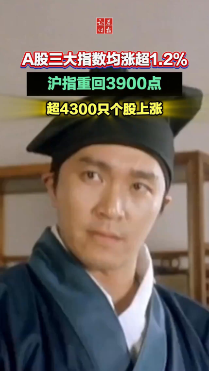 A股三大指数均涨超1.2%,沪指重回3900点,超4300只个股上涨