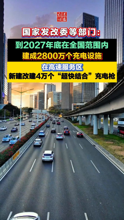 国家发改委等部门:到2027年底在全国范围内建成2800万个充电设施,在高速服务区新建改建4万个“超快结合”充电枪