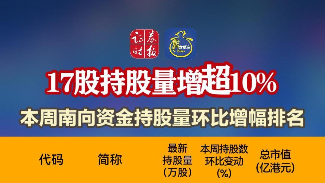 南向资金持续出手,17股持股量增长均超10%!#南向资金 #增持 #港股 #持股量