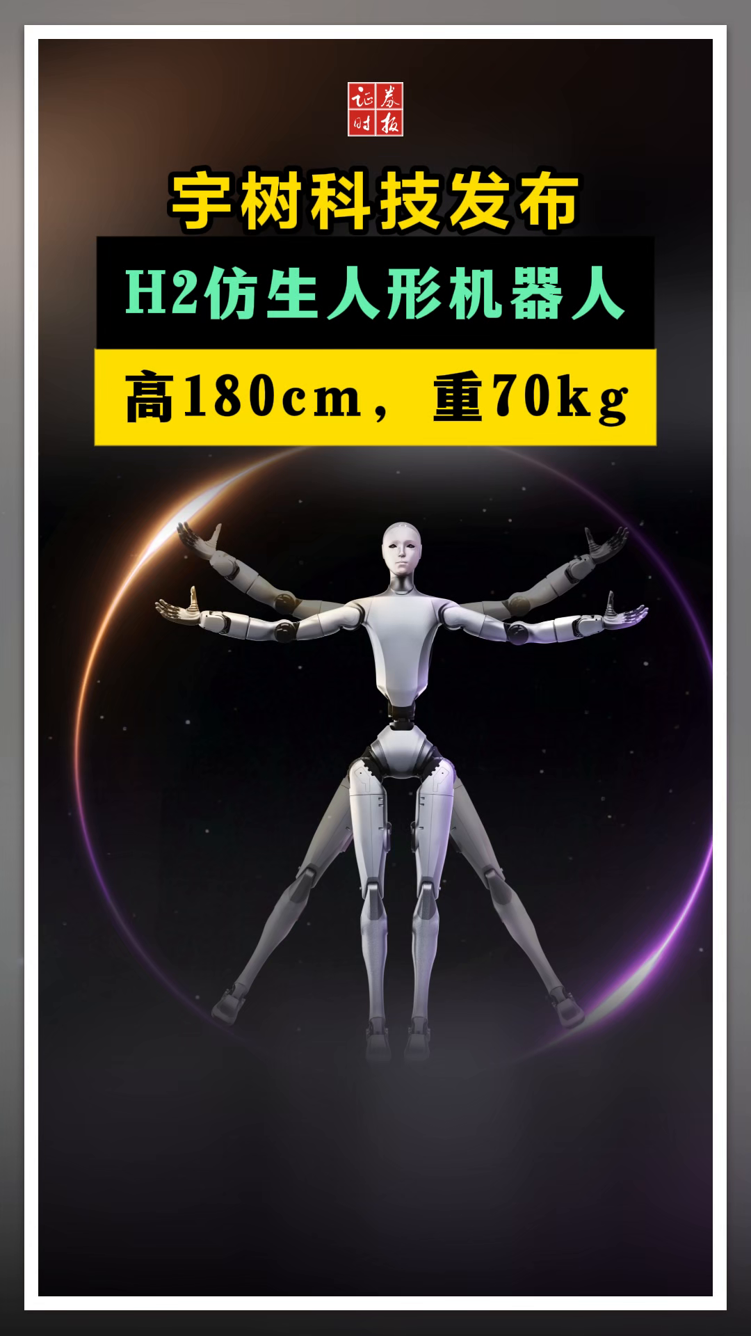 宇树科技发布H2仿生人形机器人 高180cm,重70kg