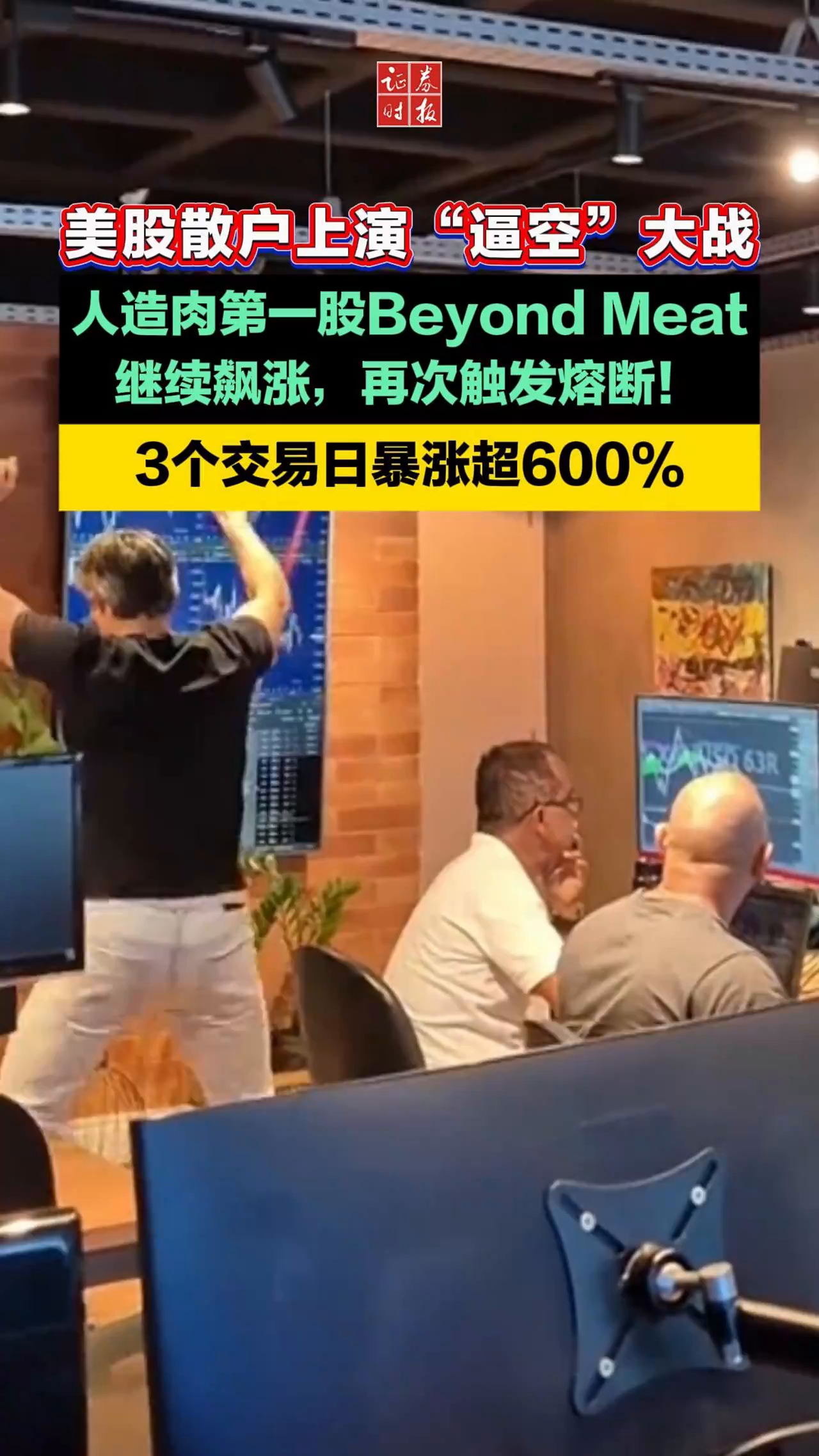 美股散户上演“逼空”大战!人造肉第一股Beyond Meat继续飙涨,再次触发熔断!3个交易日暴涨超600%