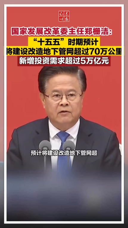 国家发展改革委主任郑栅洁:“十五五”时期预计将建设改造地下管网超过70万公里,新增投资需求超过5万亿元
