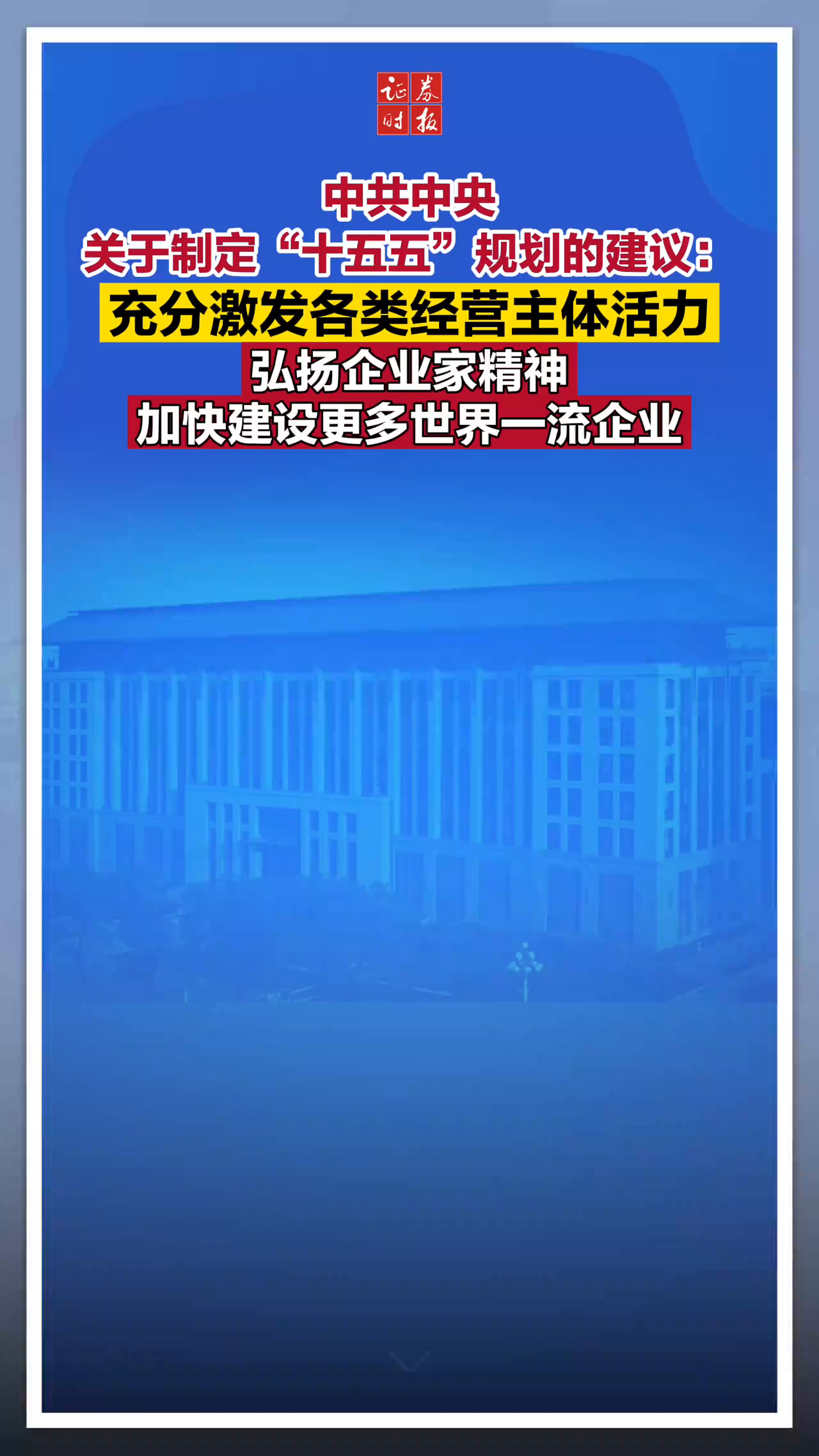 中共中央关于制定“十五五”规划的建议: 充分激发各类经营主体活力 弘扬企业家精神,加快建设更多世界一流企业