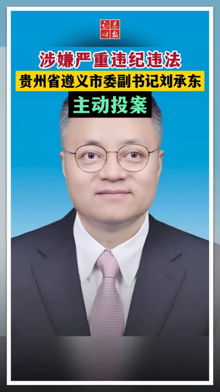 涉嫌严重违纪违法 贵州省遵义市委副书记刘承东主动投案