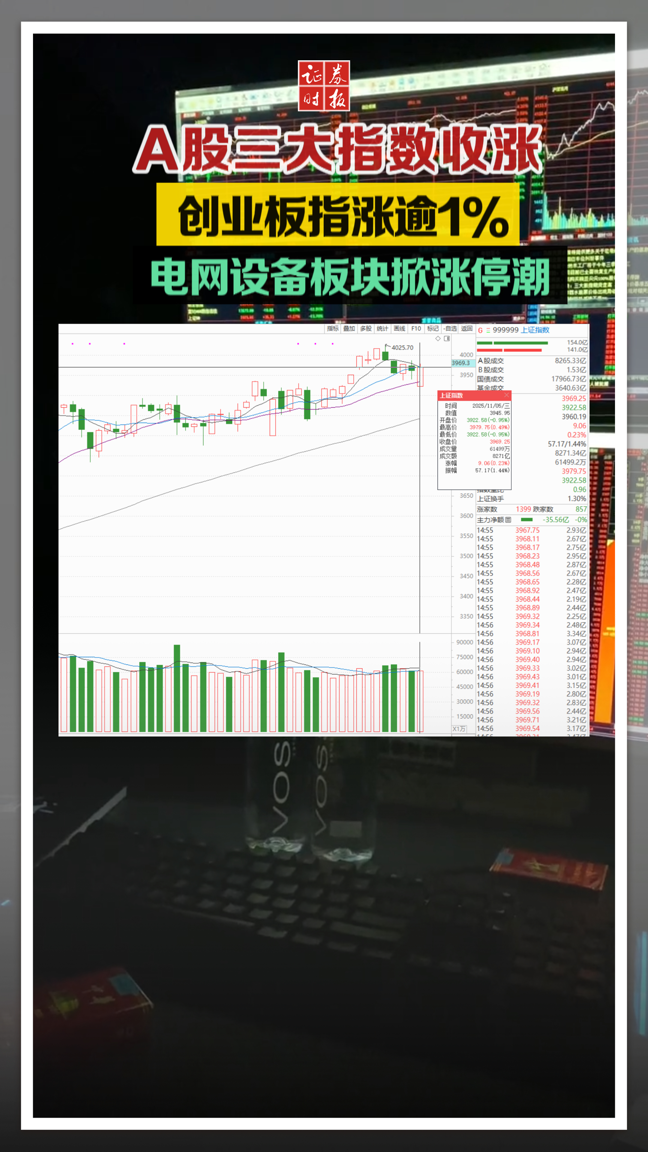 A股三大指数收涨,创业板指涨逾1%,电网设备板块掀涨停潮