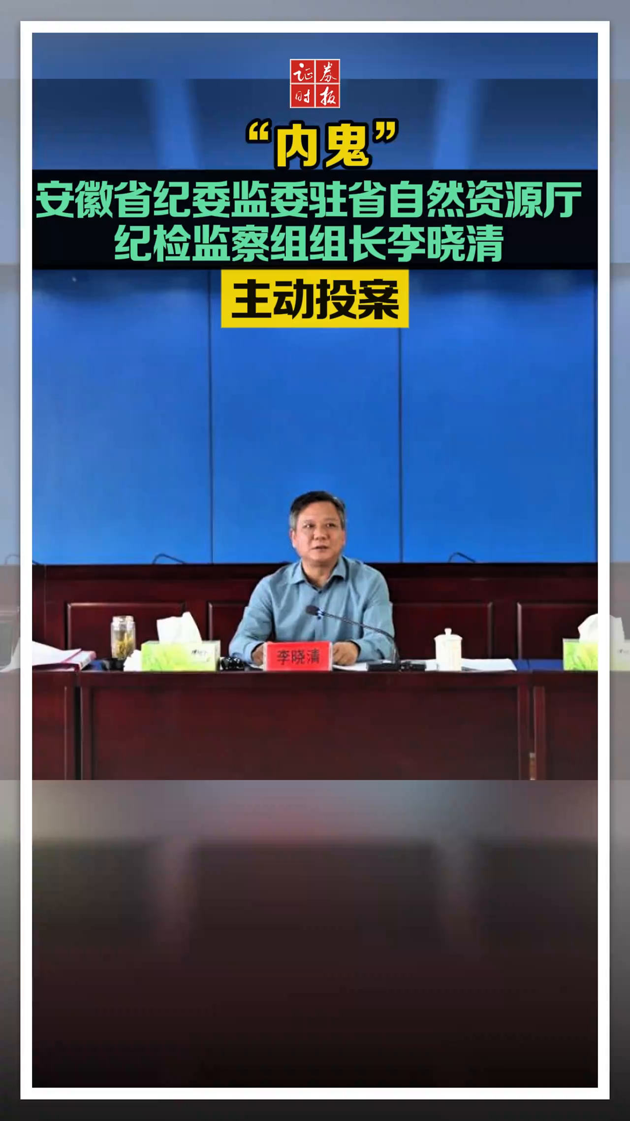 “内鬼”!安徽省纪委监委驻省自然资源厅纪检监察组组长李晓清主动投案