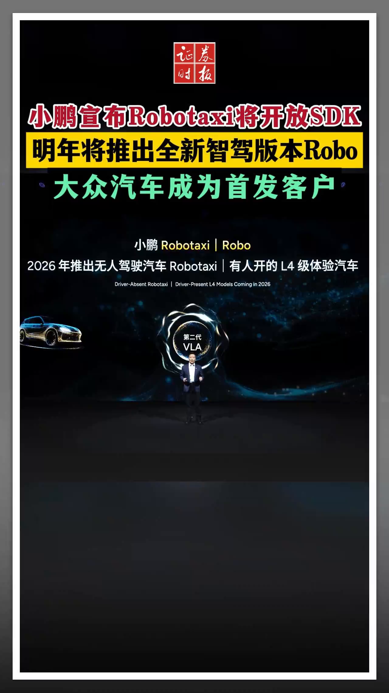 小鹏宣布Robotaxi将开放SDK 明年将推出全新智驾版本Robo 大众汽车成为首发客户