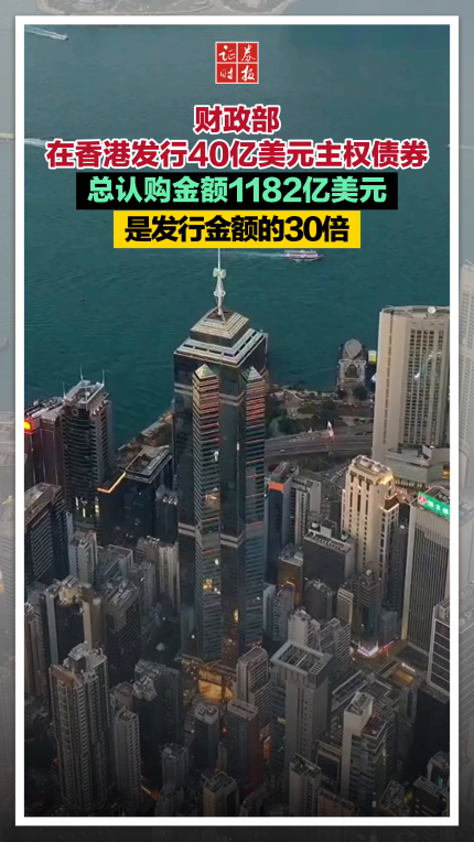 财政部在香港发行40亿美元主权债券 总认购金额1182亿美元 是发行金额的30倍
