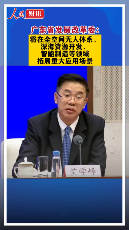 广东省发展改革委:将在全空间无人体系、深海资源开发、智能制造等领域拓展重大应用场景