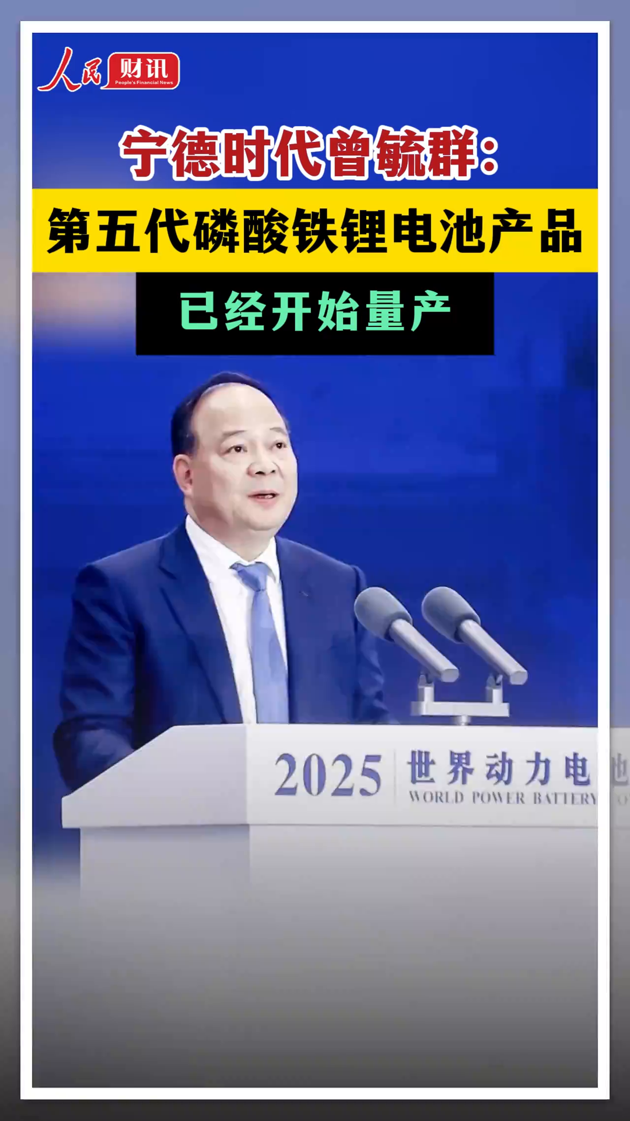 宁德时代曾毓群:第五代磷酸铁锂电池产品已经开始量产
