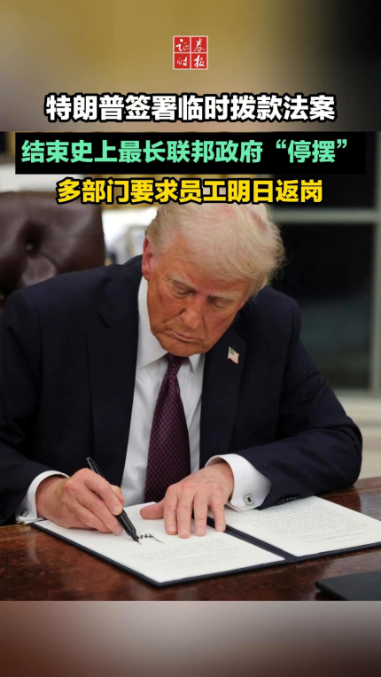 特朗普签署临时拨款法案,结束史上最长联邦政府“停摆”,多部门要求员工明日返岗