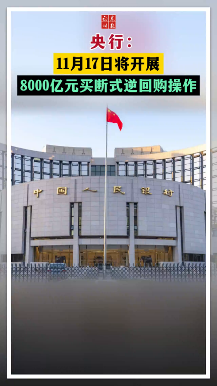 央行:11月17日将开展8000亿元买断式逆回购操作