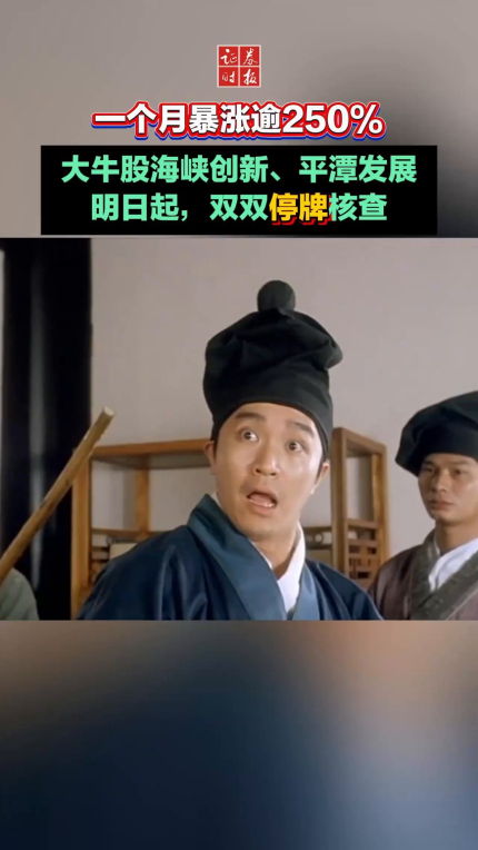 大牛股海峡创新、平潭发展,明日起,双双停牌核查
