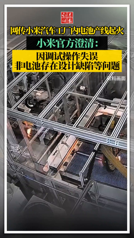 网传小米汽车工厂内电池产线起火!小米官方澄清:因调试操作失误,非电池存在设计缺陷等问题