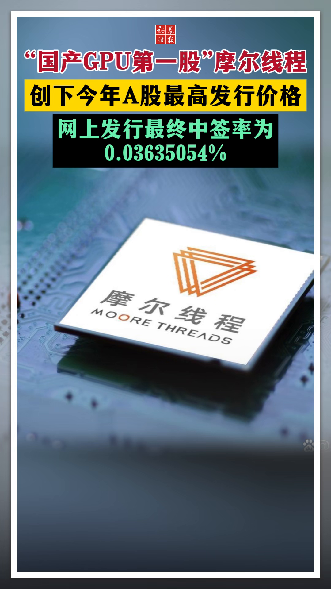 “国产GPU第一股”摩尔线程创下今年A股最高发行价格 网上发行最终中签率为0.03635054%