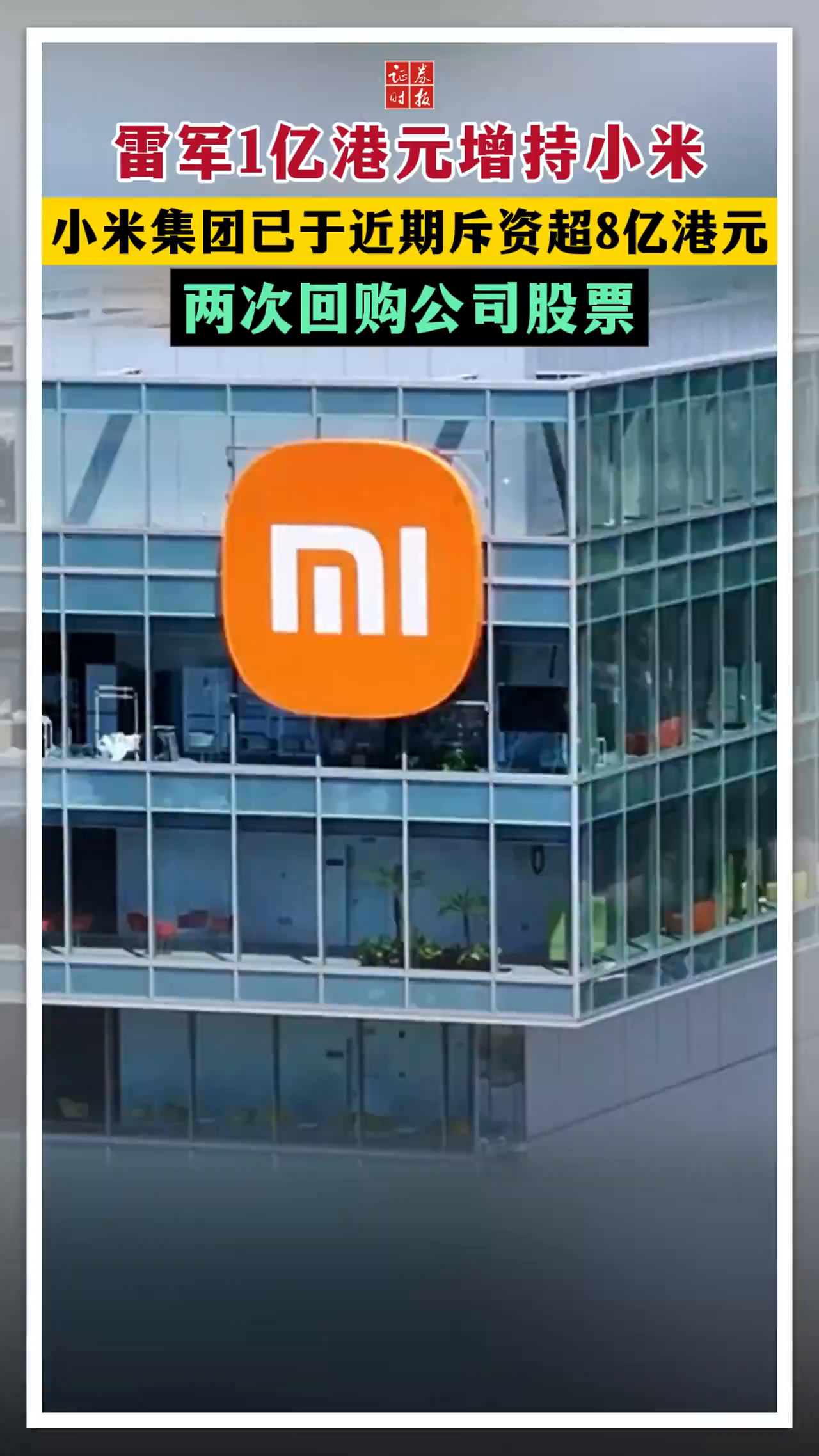 雷军1亿港元增持小米 小米集团已于近期斥资超8亿港元两次回购公司股票