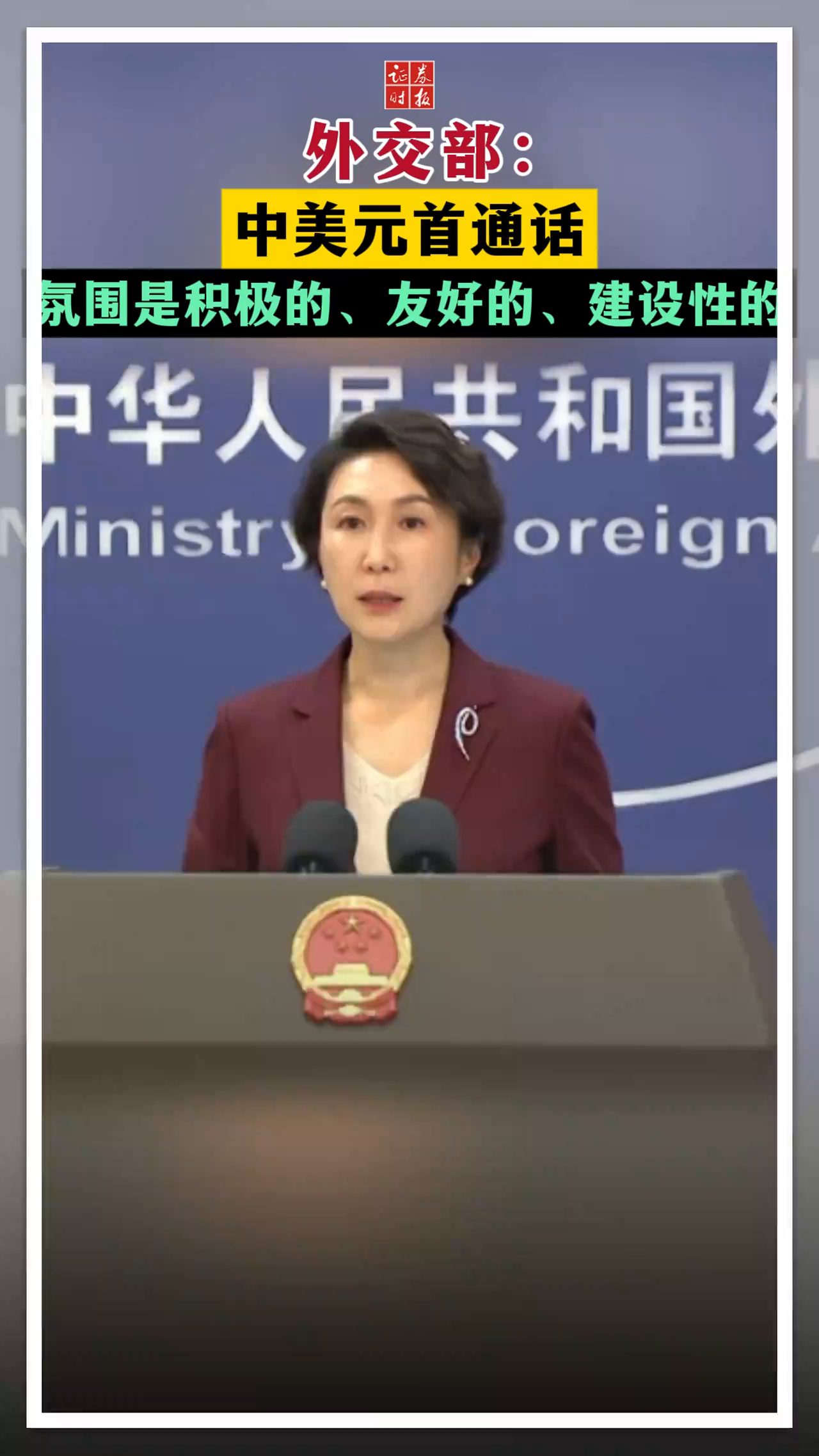 外交部:中美元首通话氛围是积极的、友好的、建设性的
