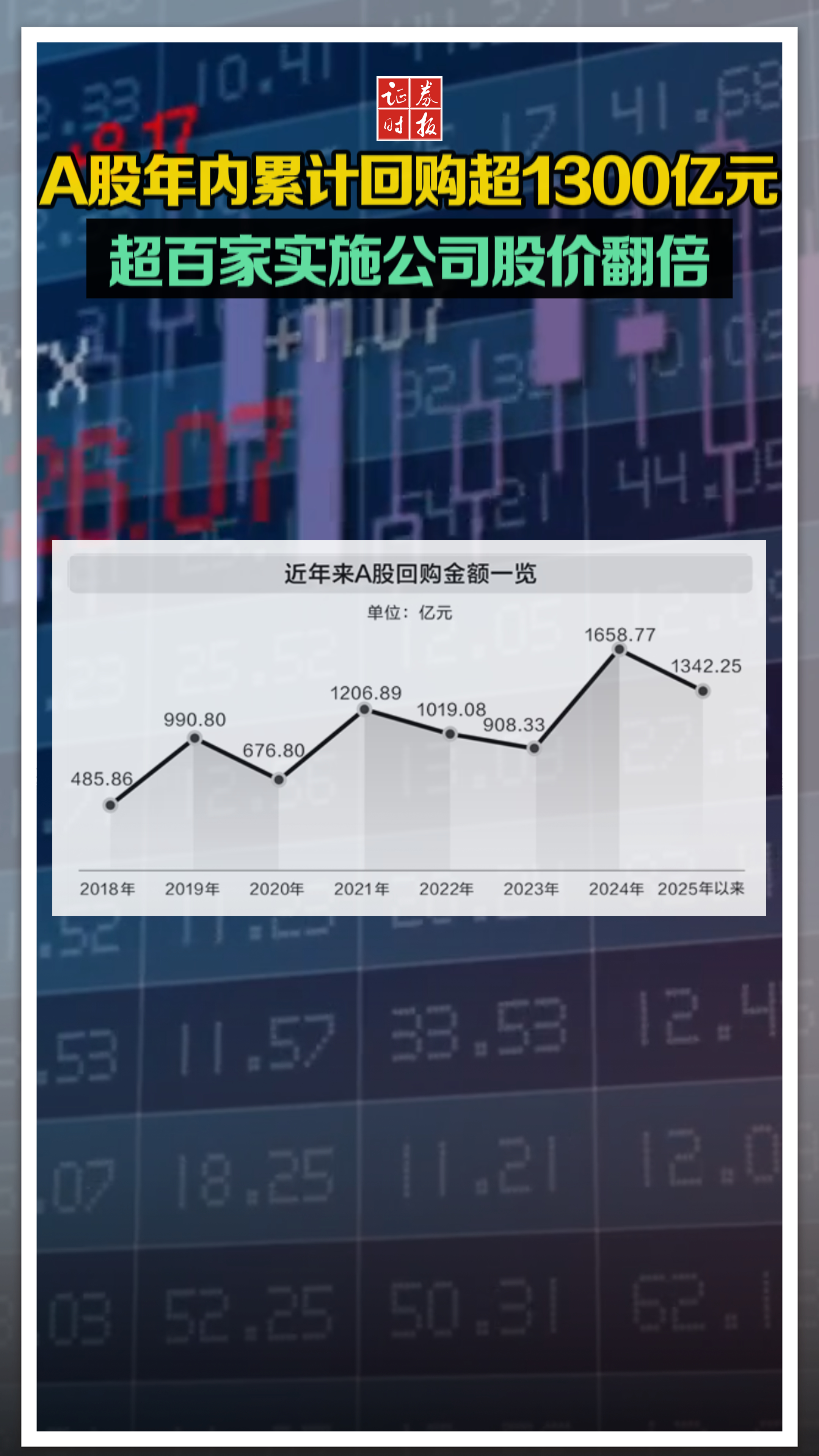A股年内累计回购超1300亿元,超百家实施公司股价翻倍