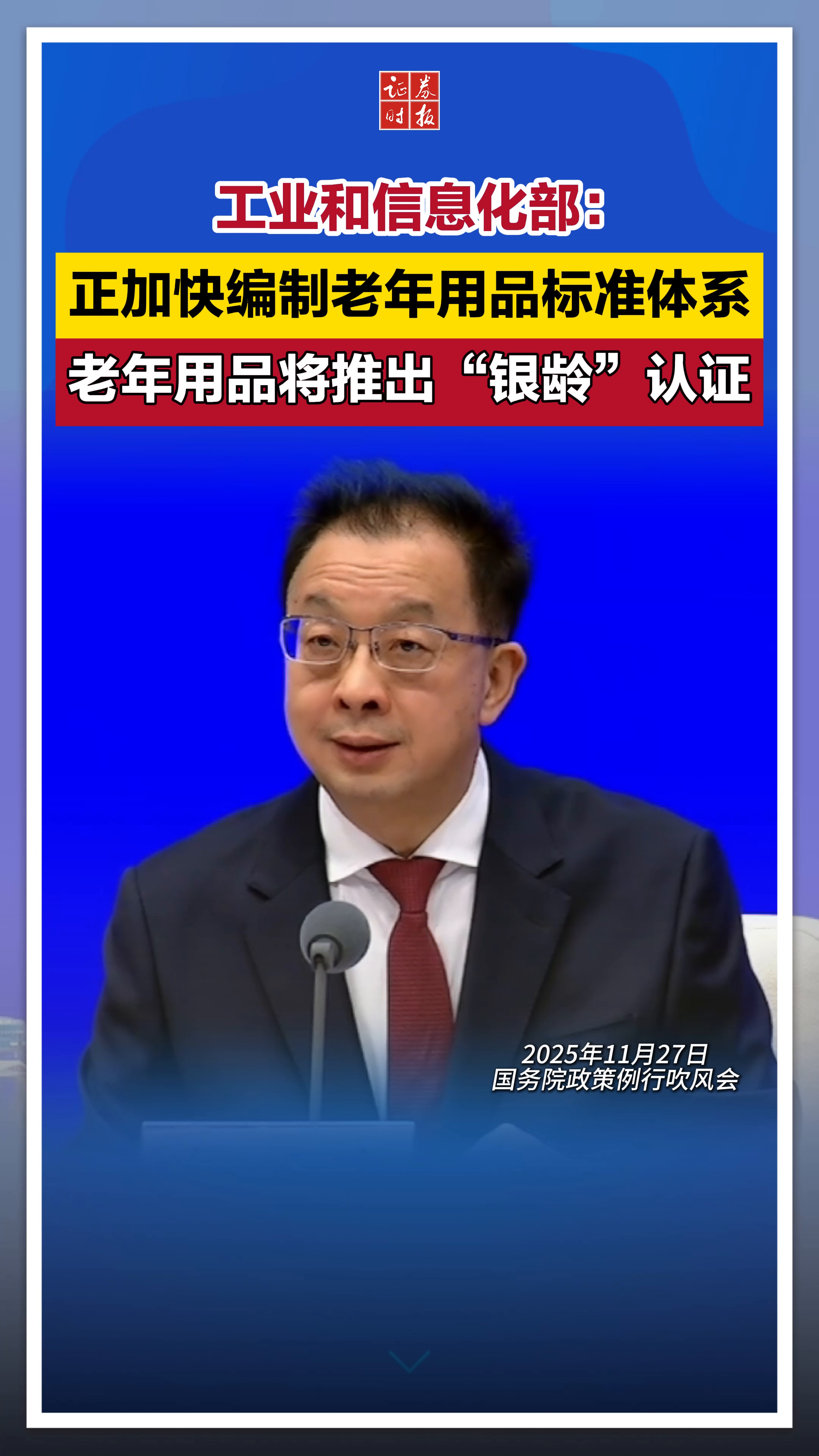 工业和信息化部:正加快编制老年用品标准体系,老年用品将推出“银龄”认证