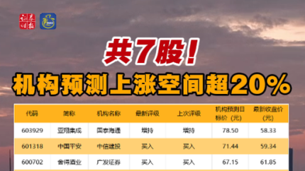 共7股!机构预测上涨空间超20%